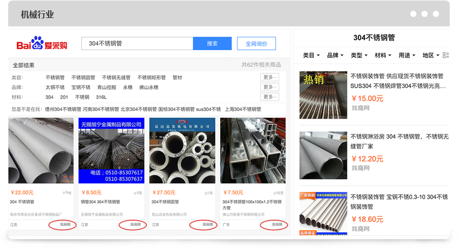 百度愛采購(b2b.baidu.com)是百度旗下的B2B垂直搜索引擎平臺,找商網是百度愛采購官方授權合作伙伴。