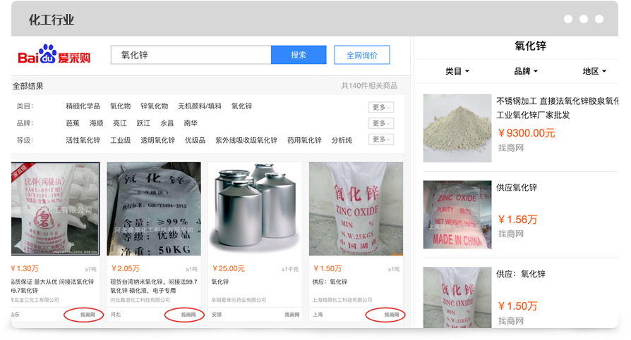 百度愛采購以百度海量搜索需求為基礎,結合找商網專業的互聯網營銷和服務團隊,為中小企業提供專業、全面的B2B推廣營銷服務,共同助力中國企業成長。